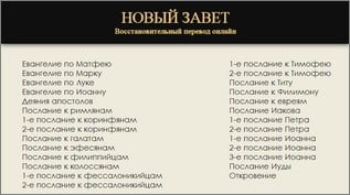 На этом сайте вы можете читать Восстановительный перевод Нового Завета на своём компьютере или мобильном устройстве в режиме онлайн, а также пользоваться функцией поиска. Страница в Интернете: www.recoveryversion.ru На сайте доступны текст Нового Завета, примечания, планы и перекрёстные ссылки, которые включены и в печатное издание. Блоки с примечаниями и перекрёстными […]