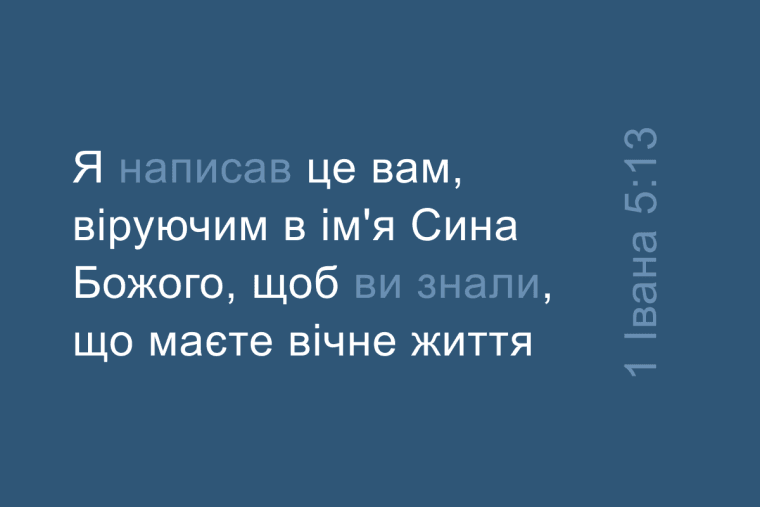 У цьому вірші ми бачимо, що Бог не хоче, щоб ми були невпевнені щодо нашого спасіння. У нас є щось написане – Слово Боже – за допомогою якого ми можемо знати, що ми дійсно спасенні. Бог хоче, щоб через Його написане Слово ми були впевнені у своєму спасінні.